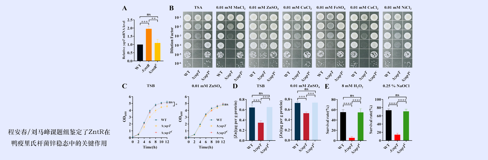 MS|动物医学免疫学研究所鉴定了ZntR在鸭疫里氏杆菌锌稳态中的关键作用