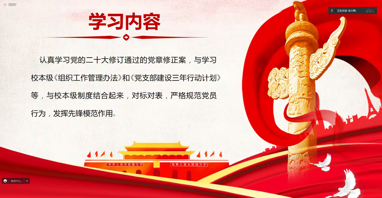 此次活动线上举行,深入学习宣传贯彻党的二十大精神,是全党全国当前和今后一个时期的首要政治任务。我们党支部按照学院的部署要求,进行了此次组织生活会的学习。