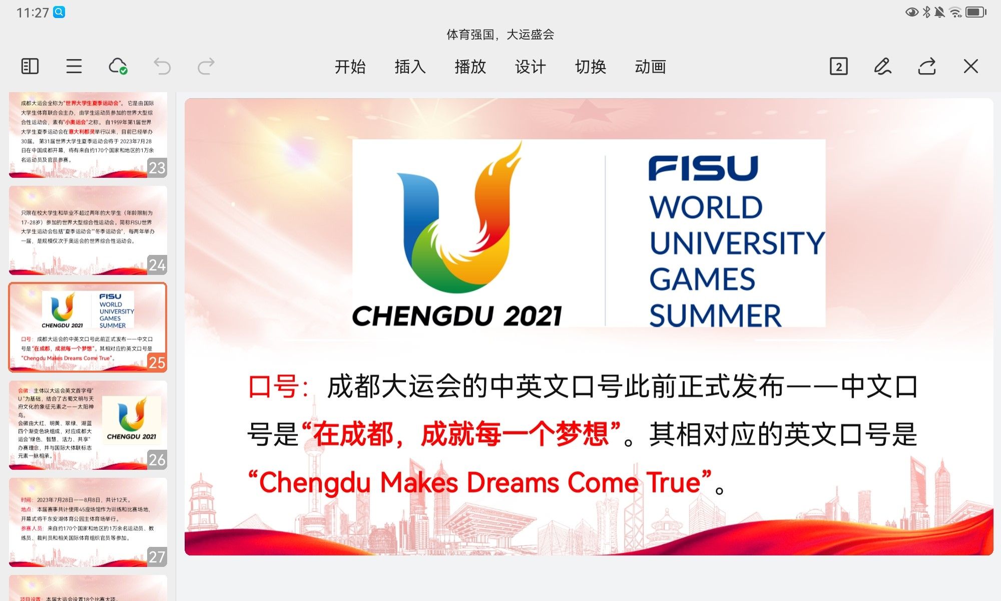 首先,分队成员齐唱《国际歌》。接着主持人周雨辰带领分队成员们一起观看了成都大运会官方形象宣传片,了解了运动员的不易和辛苦付出,学习了“发展体育运动,增强人民体质”的精神。通过此次理论学习,各成员对中国的“中国梦之旅”和“奥林匹克精神”有了更加深刻的了解。