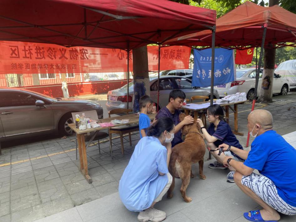 为切实帮助基层社区有宠居民了解自家宠物健康状况,利用专业所长普及宠物常见疾病防治知识,提供专业养宠咨询,营造科学、安全、文明的社区养宠氛围,同时让动医学子在实践中受教育、长才干,8月12至14日,由必赢中国官方网站教学动物医院、研究生第四党支部及动医本科生党支部9名师生组成的社会实践团队走进成都市新津区花源街道柳河社区新时代文明实践站,开展“筑动保情、承医家心”宠物义诊、科学养宠科普宣讲及调研实践活动,积极为人宠健康的和谐社区建设贡献青春力量。