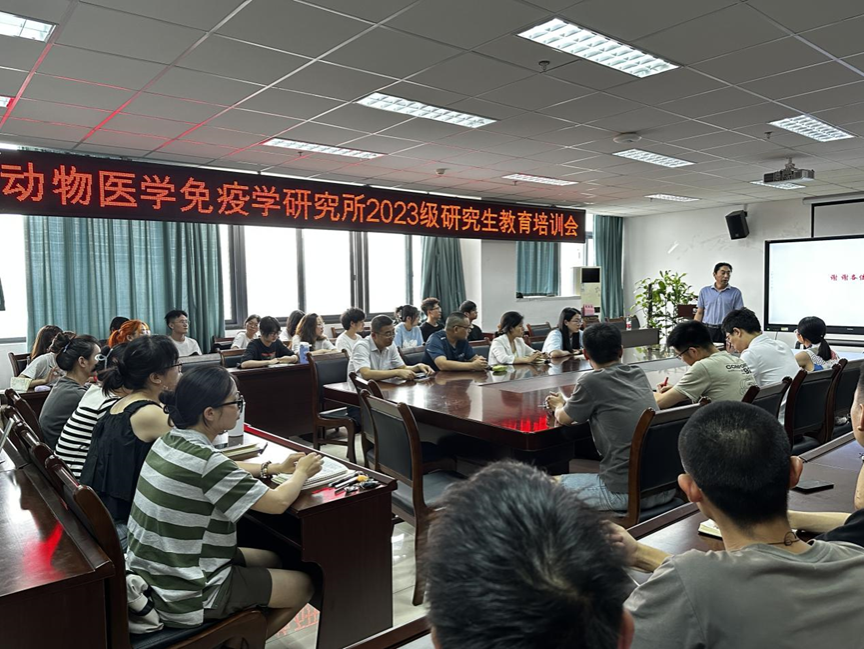 2023 年 7 月 11 日至7 月 13 日,动物医学免疫学研究所“双带头人”党支部工作室在学院党委的指导下,对标学校“双带头人”党支部工作要求,聚焦“党建+科研”、“党建+人才培养”等开展了对2023 级第一批到校的研究生入学教育会议、实验室安全管理制度培训、培养方案解读、实验室仪器实操培训等一系列入学教育和培训活动。