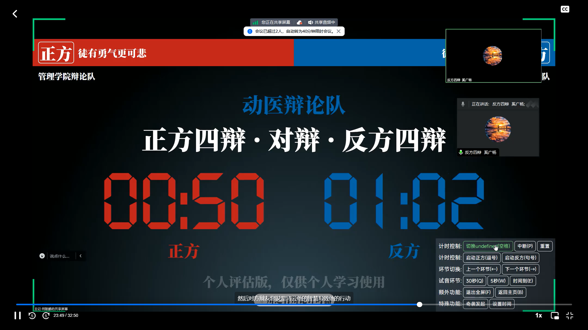 尽管比赛初期由于心情紧张等因素小队成员出现思路不清晰、语无伦次等问题,但随着比赛的进行,小队成员找到状态,将准备的内容与心中所想充分表达出来,贡献了一场精彩的辩论赛。