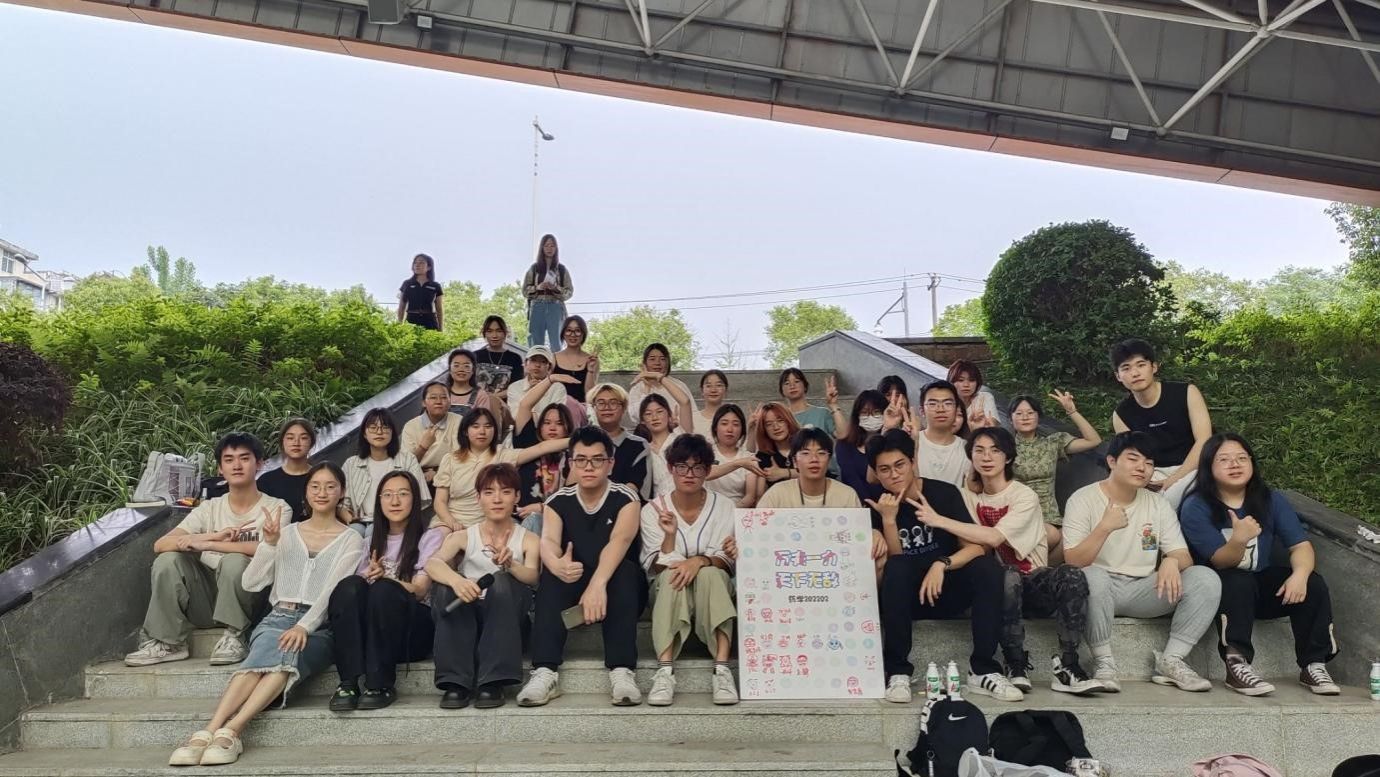 (图为药学202202班同学与助班、驻党正在下沉广场合影留念)