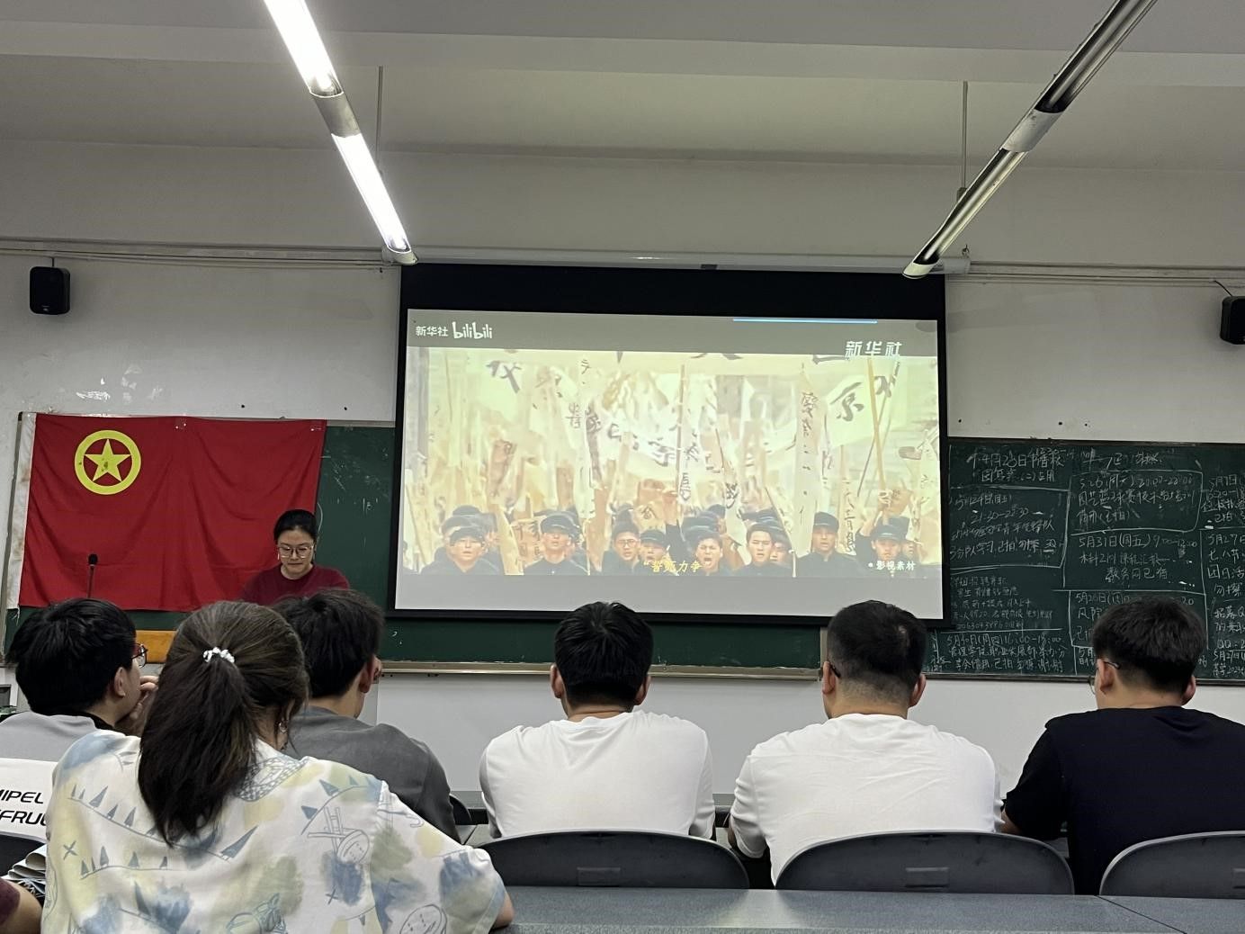 在“筑生态文明,绘山水宏图”主题学习中,全体成员跟着课件,认真学习习近平生态文明思想,牢固树立和践行绿水青山就是金山银山的理念;在第五部分,全体团员通过观看两个反邪教教育视频,学习邪教对人们带来的各种危害,随后又在主持人的带领下共同学习如何防范邪教,总体上达到“共唱反邪高歌,谱写青春乐章”的学习目的。最后,当嘹亮的团歌声再一次响起时,团日活动迎来了尾声。