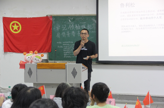 “标兵共传承,激青春活力”。由本学年荣获“五四红旗团支部标兵”称号的水产202101团支部的曹星宇,分享了团支部在组织建设、学风建设、社会实践、科技创新等方面的经验做法,激励川农学子为祖国建设贡献青春力量。