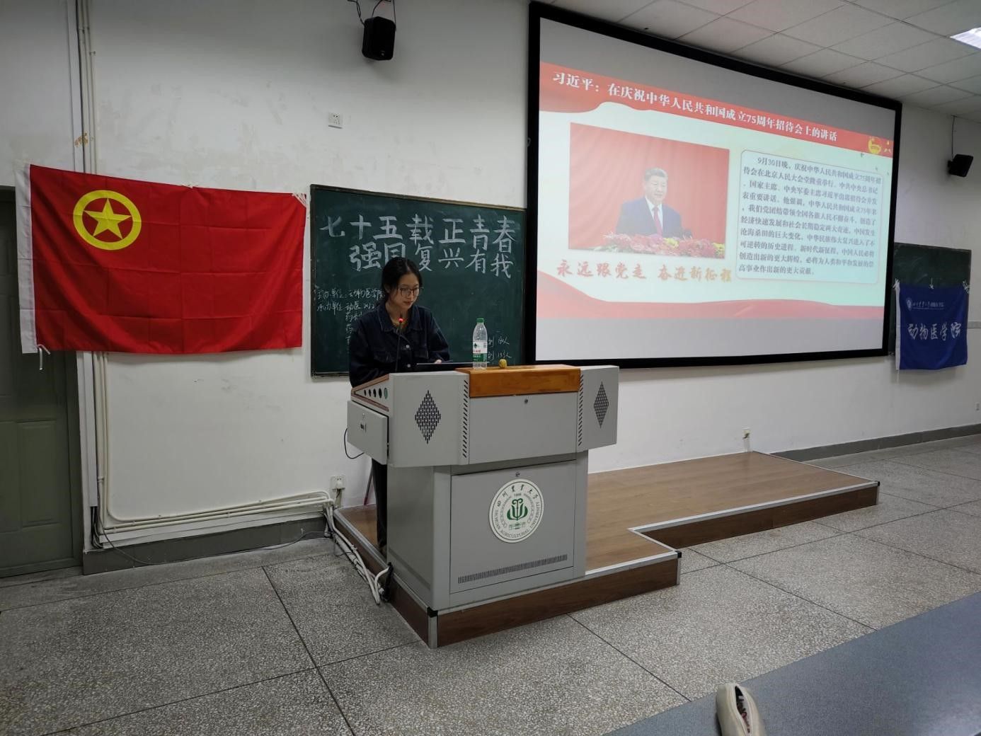 为深入学习贯彻习近平总书记在庆祝中华人民共和国成立75周年招待会上的重要讲话,进一步激发广大青年学生为中国式现代化挺膺担当的使命感和责任感。10月29日,必赢中国官方网站动医202206班、药剂202202班、药剂202401班、药剂202402班、药学202202班、药学202402班共6个团支部在必赢中国官方网站成都校区4A-106教室联合开展了主题班团活动。