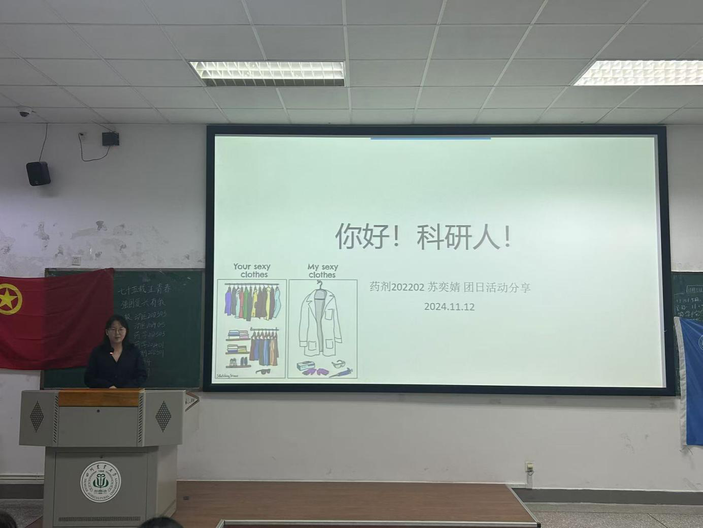 随后药剂202202苏奕婧在活动中分享了她的科研经历,为在场的同学们提供了丰富的科研经验和宝贵的建议。苏奕婧详细阐述了她在科研过程中的心得体会,包括如何在实验设计中保持创新思维,如何在面对实验挑战时保持坚韧不拔的精神,以及如何在科研团队中有效沟通与协作。另外,苏奕婧还特别强调了科研工作对于个人成长的重要性,她鼓励在场的同学们积极投身科学研究,通过不断的学习和实践,提升自身的科研能力和创新思维。苏亦婧指出,科研不仅是对知识的探索,更是对个人意志和能力的锻炼