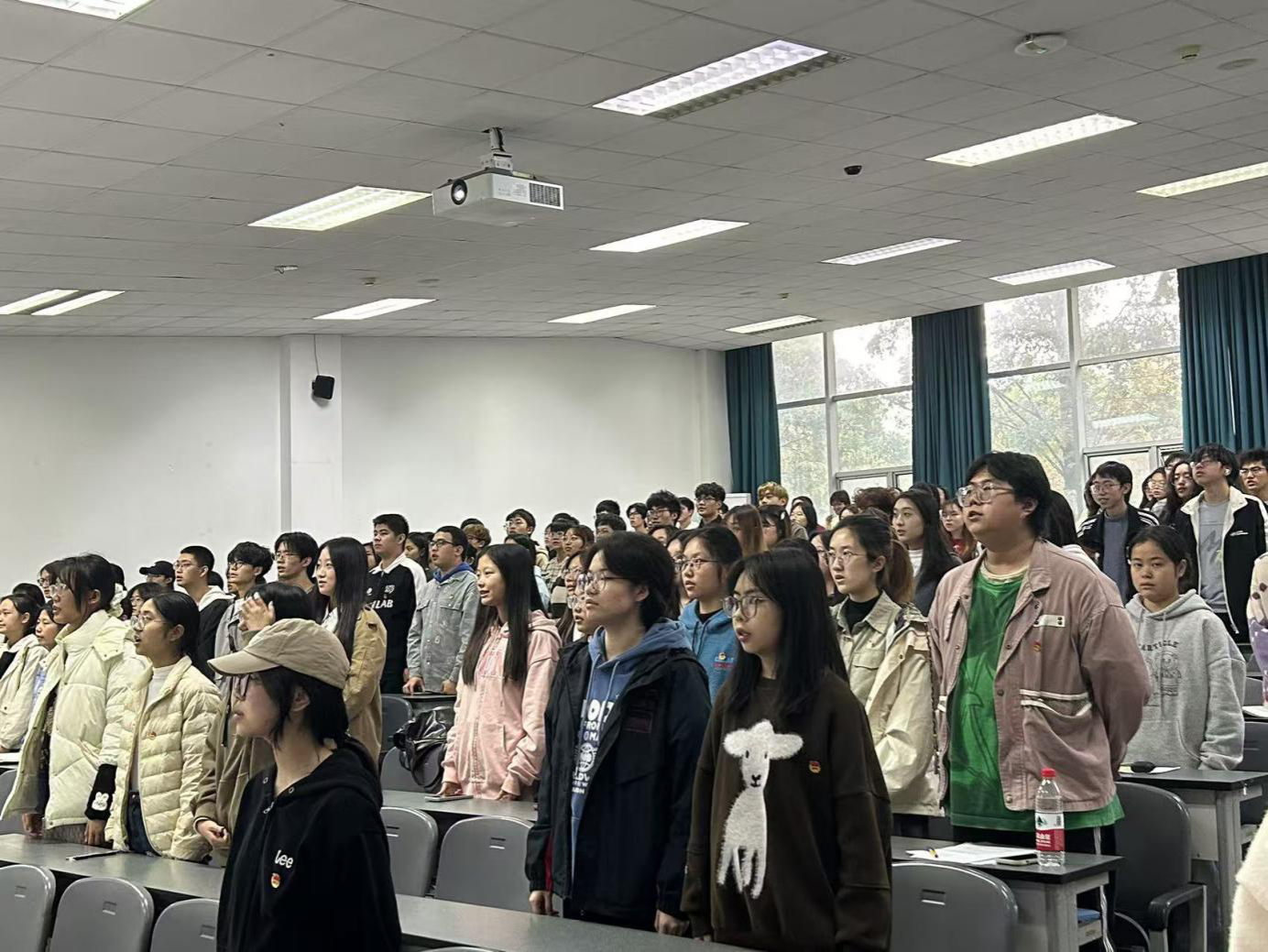 活动进入尾声,全体再次齐唱团歌,本次班团活动圆满结束。此次班团活动深入主题,帮助青年团员们回顾、反思了新中国75年来一步一步,挣脱镣铐,挺直腰板,化为一条巨龙在世界东方展翅高飞的历程,也指引着青年团员们在日后科研实践、志愿服务、校园学习中不断发扬相应的实事求是、乐于奉献、细致严谨的精神。