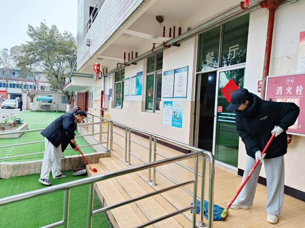 上午9时,志愿者抵达老年公寓后迅速组建“环境美化”和“心灵陪伴”两个专项小组。在公寓工作人员指导下,环境美化组对活动室、楼道等5处公共区域进行了深度清洁,此外还打扫了包括窗户、栏杆、沙发、桌椅的其他卫生死角;心灵陪伴组通过“一对一”结对的形式,记录老人的人生故事,建立个性化服务档案。面对充满鲜活朝气的“Z世代”志愿者,老人们也关爱有加,“降温要添衣”“实习注意安全”的叮咛此起彼伏。老人拉着志愿者的手感慨:“这些孩子比亲孙女来得还勤快哩!”