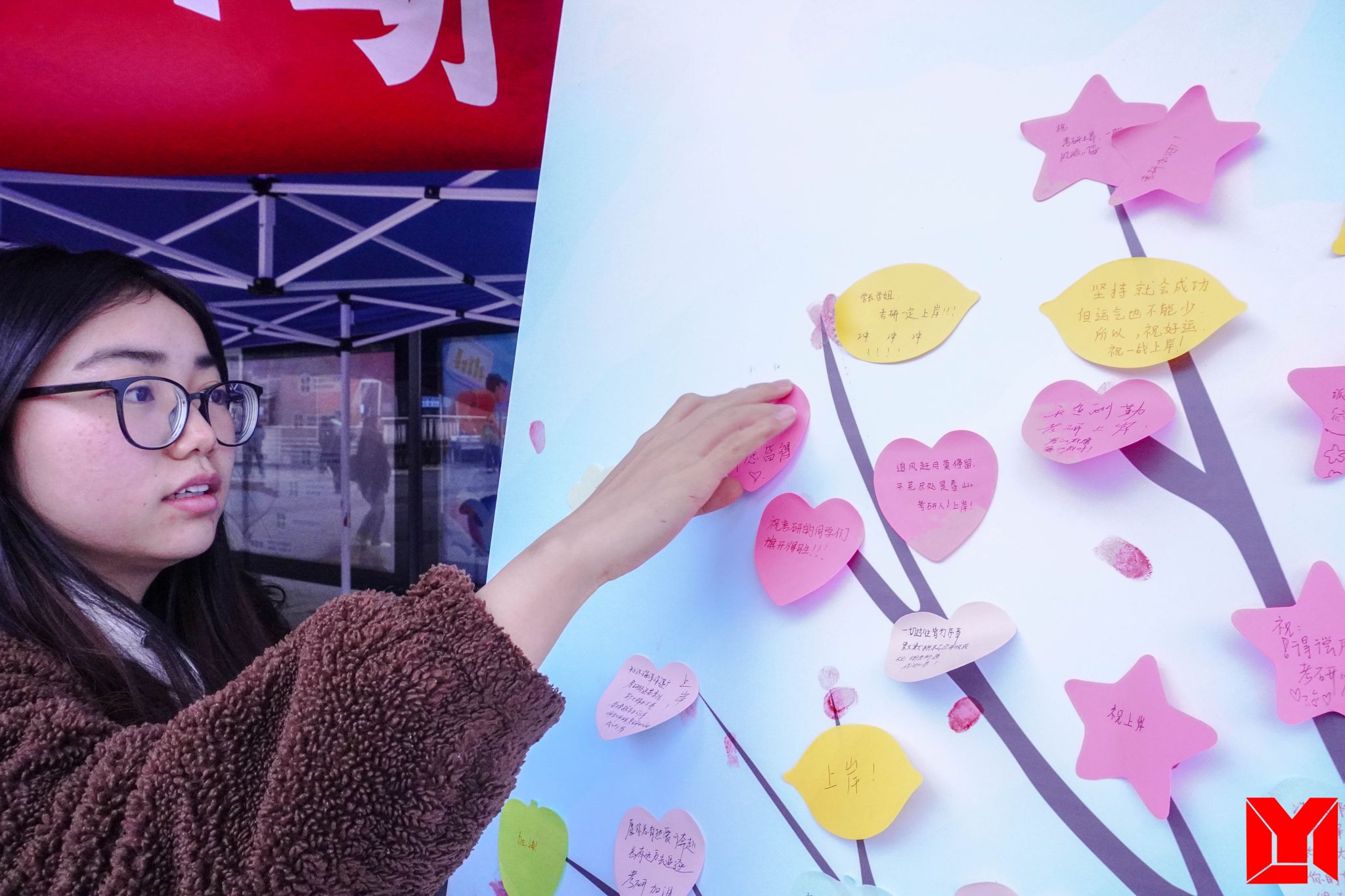 活动于12月13日至14日在成都校区食堂前小广场举办。志愿者们提前布置好了活动场地,摆满了精心准备的暖心包和各种小礼物,向每一位经过的考研学子们传递温暖。非考研同学也纷纷通过手写祝福语的方式为考研学子送去祝福,祝福便签纸贴满了祝福树。