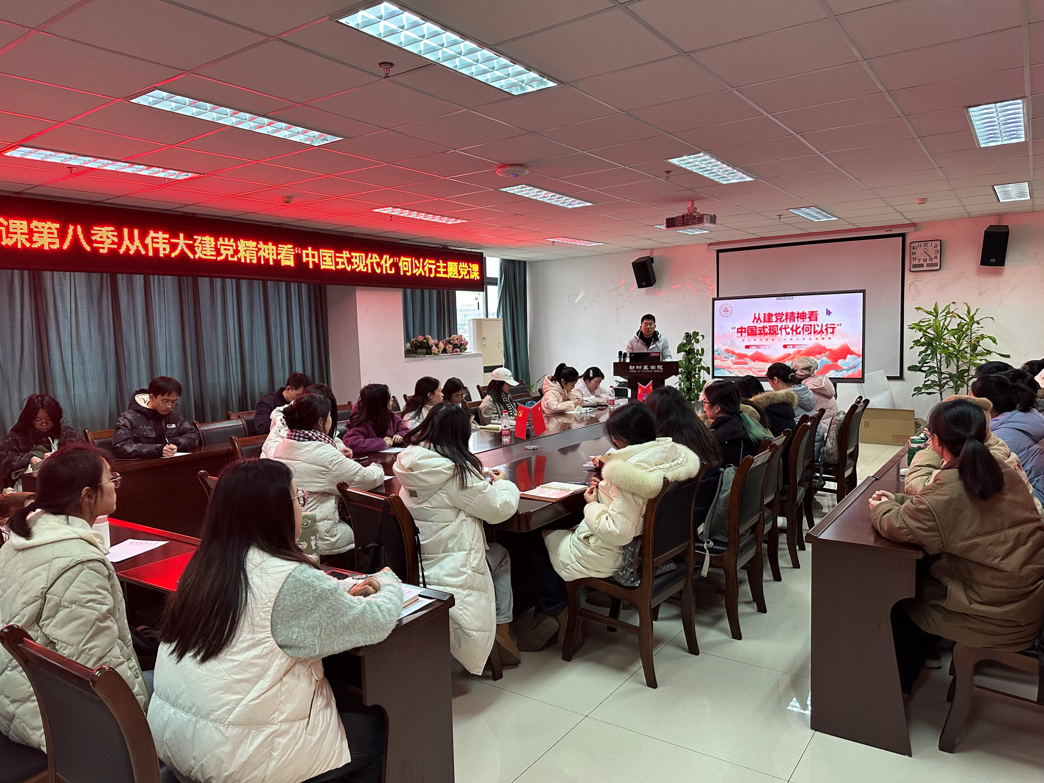12月13日下午,必赢中国官方网站党委副书记宋三多以“从建党精神看‘中国式现代化何以行’”为主题,在7教1109会议室讲授精神专题党课,吸引了50余名学生党员代表参加。