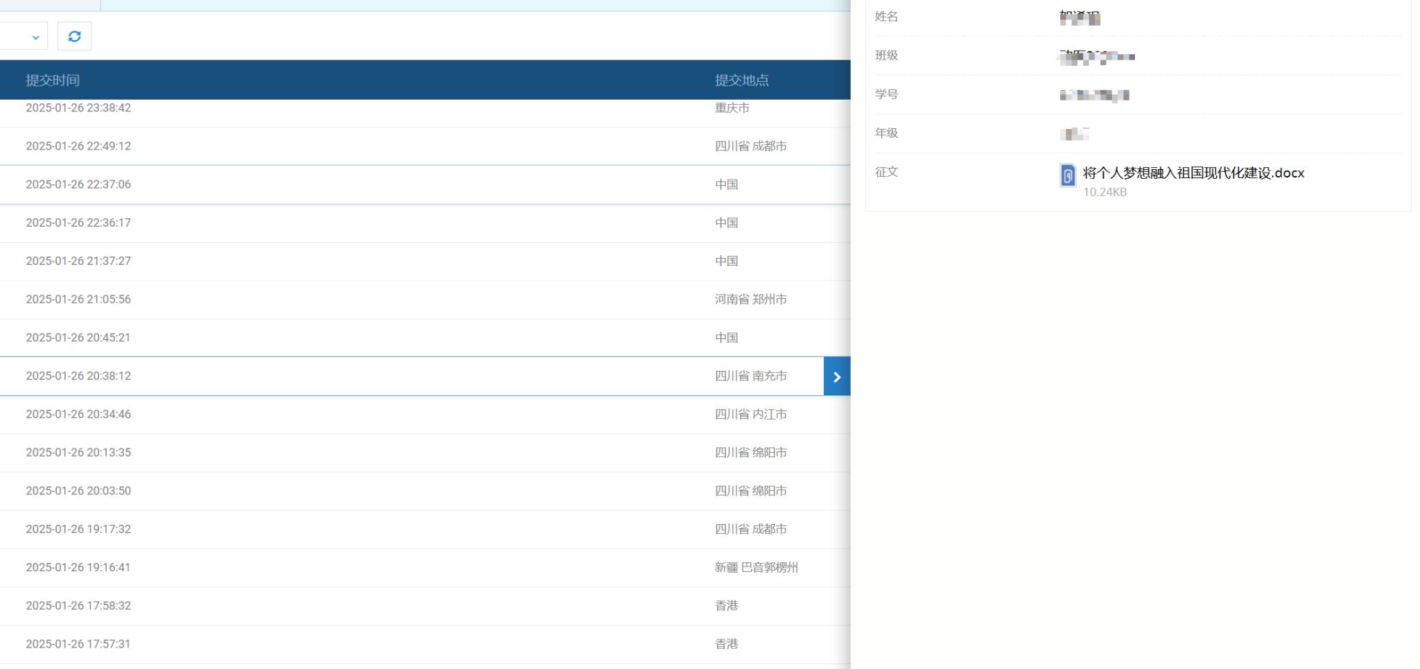 在作品提交过程中,同学们积极发挥创意,用真挚的文字表达对祖国的热爱和对未来的憧憬。许多作品中都涌现出了令人印象深刻的佳句。例如,23级学生桂银玻在作文中写道:“祖国的现代化建设是一场伟大的征程,而我们青年学子就是这场征程中最活跃的细胞。我愿以青春之笔,书写强国之梦,用汗水浇灌祖国的繁荣之花。”24级学生庄镇宇则表示:“在新时代的浪潮中,我们既是见证者,更是参与者。个人的梦想只有融入祖国的事业,才能绽放最耀眼的光芒。”这些充满力量的文字不仅展现了同学们的文学素养,更体现了他们对祖国的深厚情感和对未来的坚定信念。