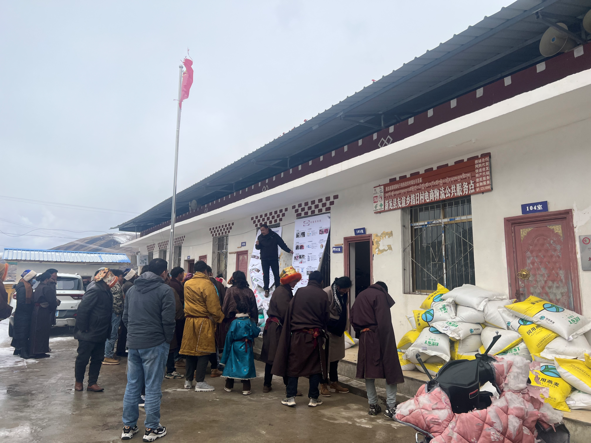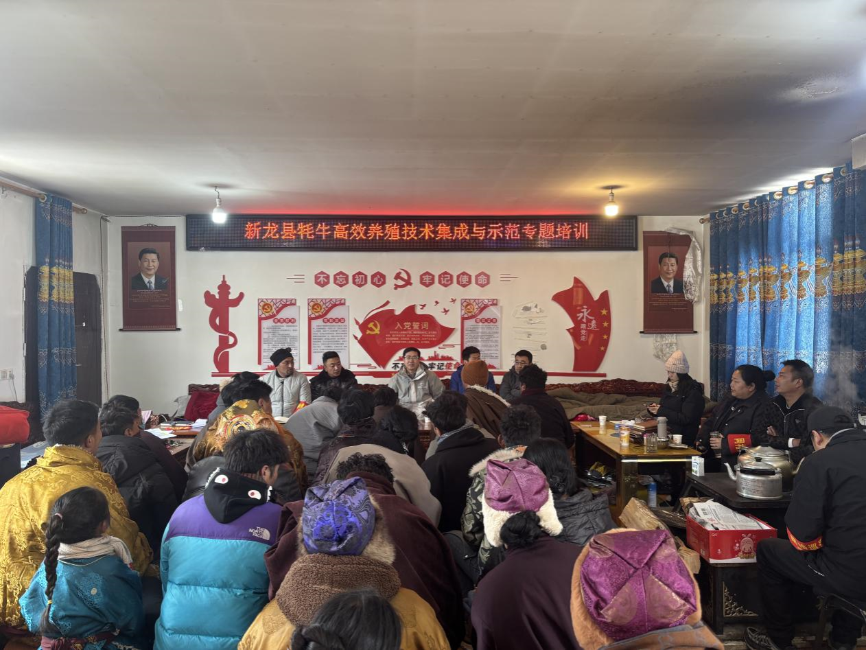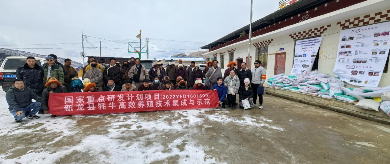 3月6-7日,左之才教授一行先后前往海拔4300米的新龙县友谊乡,开展牦牛养殖技术培训和冬季牦牛养殖技术指导工作,并根据当地牦牛养殖问题送去了舔砖、牦牛精补料、饲用燕麦种子、有机肥料等。在此次帮扶工作中,友谊乡党委副书记雪绕益珠、乡长洛绒降央以及村党委主任向专家团队汇报了冬季牦牛养殖过程中存在的一系列问题,指出牦牛冬季饲草不足、呼吸道疾病高发、疫苗供应不足养殖技术落后等问题。团队专家针对牦牛个体生长及配种问题、冬季呼吸道疾病的防控以及疫苗免疫等问题对养殖户进行草料管理的专项培训,同时为他们提供预防结节性皮肤疫苗等。