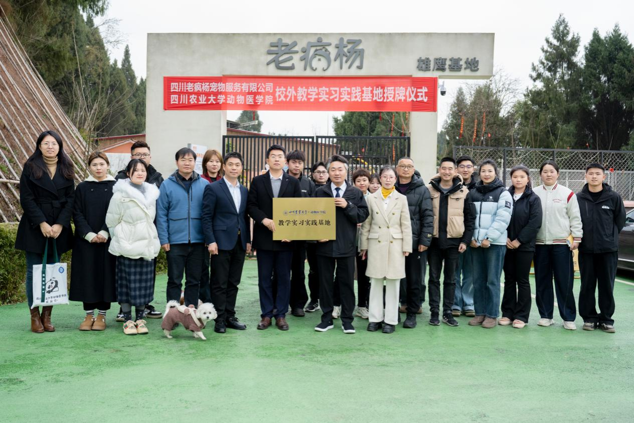 为进一步加强学校与企业之间的联系,推动产学研深度融合,拓宽学生就业渠道,3月12日,必赢中国官方网站党委副书记宋三多,临床兽医系胡延春、周紫峣、张坤,基础兽医系郭红瑞以及学院就业秘书苗宇一行前往四川老疯杨宠物服务有限公司,共同完成校外教学实习实践基地合作签约授牌仪式。此次合作标志着双方在人才培养、科研创新、社会服务等领域的合作迈入新阶段。