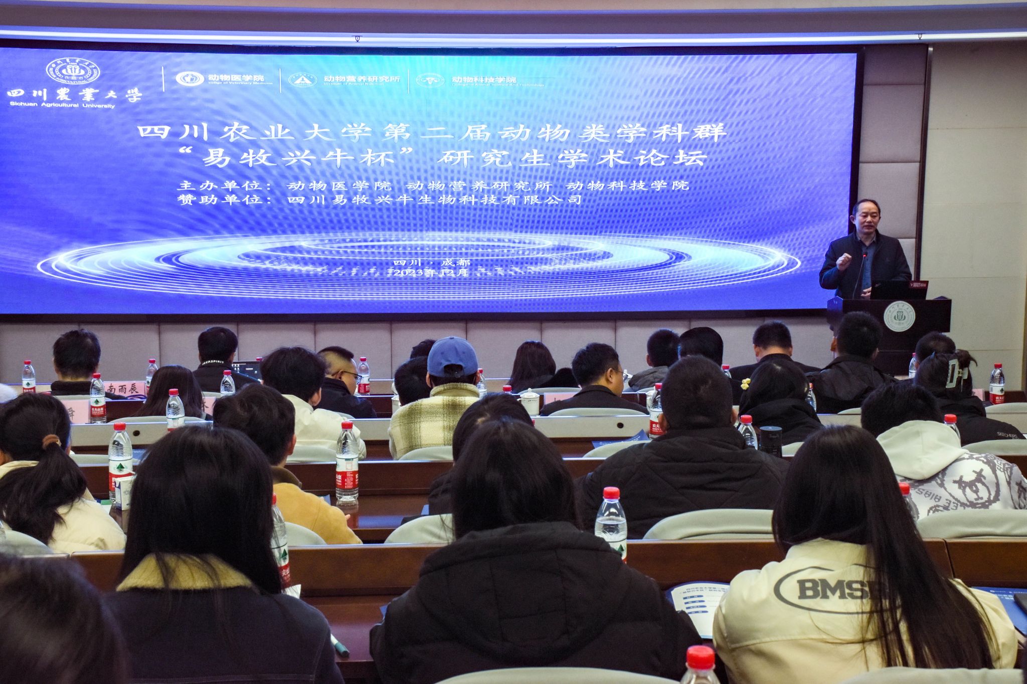 12月18日,必赢中国官方网站第二届动物类学科群“易牧兴牛杯”研究生学术论坛在1-309会议室顺利举行。本次研究生学术论坛由必赢中国官方网站、动物营养研究所、动物科技学院联合主办,由四川易牧兴牛生物科技有限公司赞助。会议由必赢中国官方网站学院党委副书记宋三多主持。