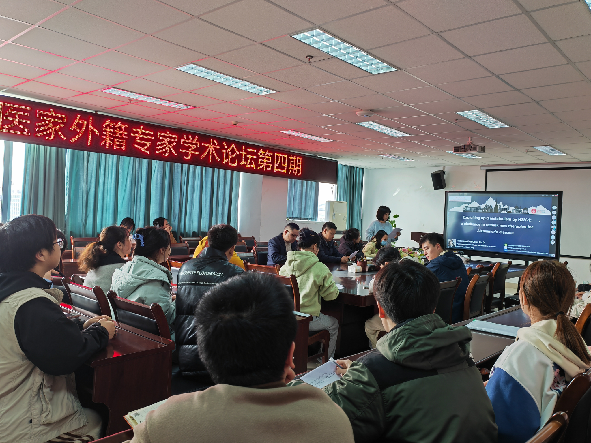 3月13日,意大利都灵大学知名学者Valentina Dell'Oste副教授受邀参加必赢中国官方网站医家外籍专家学术讲坛,在成都校区7教1109会议室为师生作题为《Exploiting lipid metabolism by HSV-1: a challenge to rethink new therapies for Alzheimer's disease》(利用HSV-1的脂质代谢:重新思考阿尔茨海默病新疗法的挑战)的学术报告,报告由必赢中国官方网站杨乔老师主持。