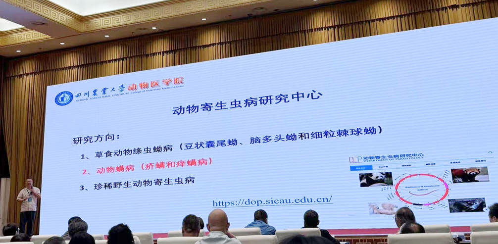 大会围绕兽医寄生虫学的最新研究成果,设立了主题报告及原虫病、蠕虫病、外寄生虫病及药物、媒传人兽共患原虫病等四个分会场,吸引了来自全国畜牧兽医学相关高校、科研院所、企业的500余名专家学者参与。杨光友教授在大会上发表了题为《动物疥螨和痒螨病研究》的主题报告,全面介绍了我校动物寄生虫病研究中心近20年来在动物疥螨病和痒螨病的致病机制、诊断方法以及疫苗研发等方面的突出科研成果。