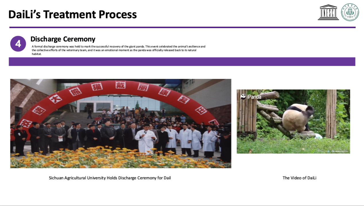 据悉,彭广能教授及野生动物疾病防控团队长期致力于大熊猫及其伴生动物疾病防控的研究。目前,团队骨干成员钟志军教授、周紫峣博士、刘海峰博士分别从事大熊猫麻醉及耐药性、大熊猫牙科和内镜应用研究。团队成员曾主持有大熊猫国际合作资金项目、国家自然基金面上项目、国家林草局重点项目和成都大熊猫繁育研究基金会项目等。