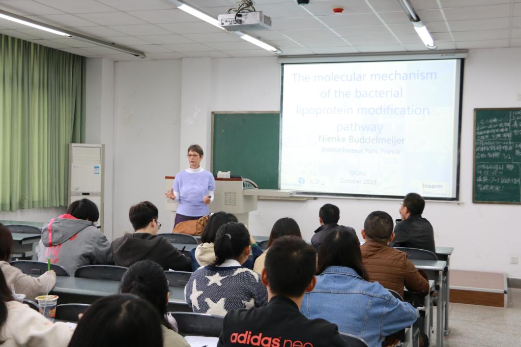 Nienke Buddelmeijer研究员于10月22日和25日,分别为必赢官网2018级的博士研究生和硕士研究生讲授《高级兽医微生物与免疫学》相关课程内容。10月25日下午,基于“必赢中国官方网站-法国巴斯德研究所双边学术交流合作协议书”,Nienke Buddelmeijer研究员和必赢官网外籍博士生导师BIVILLE Francis研究员(现任法国巴斯德研究所方“合作协议”负责人),在 6教201会议室对有意向申请2019年国家留学基金委联合培养硕士生项目,前往法国巴斯德研究所(为期3-6个月)的3名同学进行了初步面试。